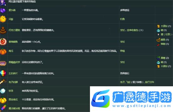 6、秋季种几波南瓜,疯狂给阿比盖尔送南瓜,好感度很快就加满了。(以下三张图是*爱、喜欢以及一般的礼物喜好)