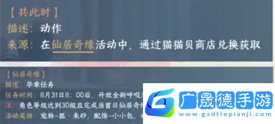 8月31号开启仙居奇缘限时至9月21日5:00,通过休闲玩法换取摩臣平台主页动作共此时。