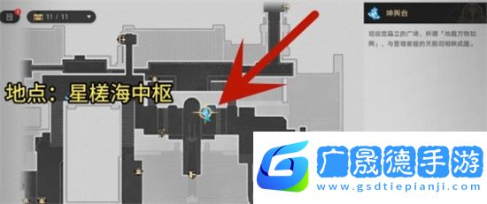 1、玩家在地图中找到星槎海中枢右上角传送点位置。