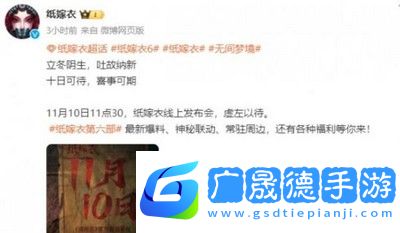 1、纸嫁衣第六部名称还是叫“无间梦境”。