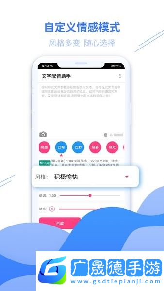 2. 语音选择:用户可以选择不同的语音类型,包括男声、女声、童声等。