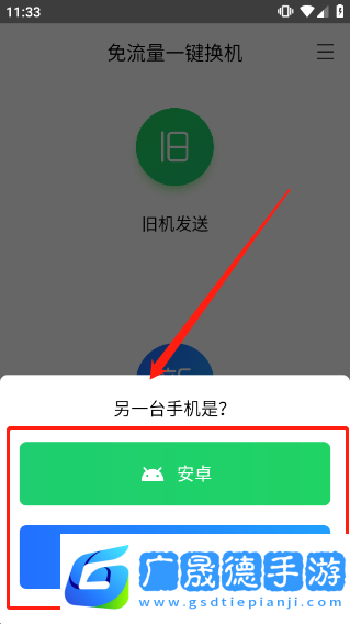3、点击后,下方会提示另一台手机是什么设备。点击安卓手机或者苹果手机。