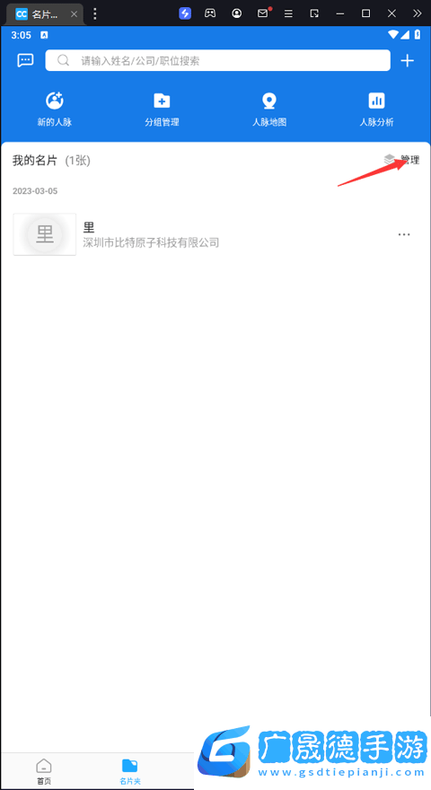 1、先打开【名片全能王】app,然后进入【名片夹】页面。
