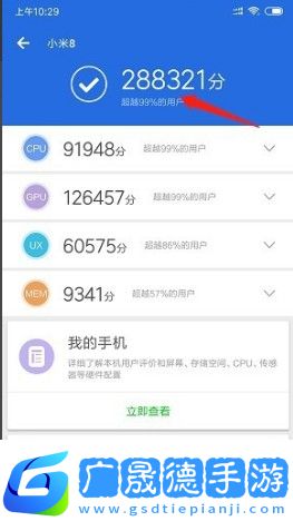 4、等待安兔兔测试完之后,我们就可以看得到我们手机的跑分情况了。