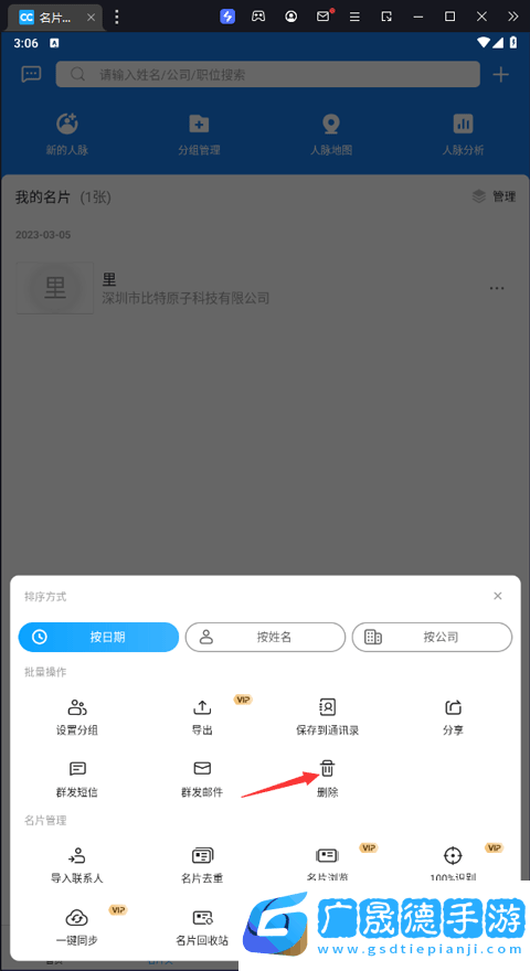 5、最后选择你要删除的名片,点击【删除】,你的名片就删除啦!