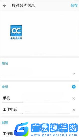 4、完成识别后,点击右上角的“保存”按钮,可以将名片进行分组。