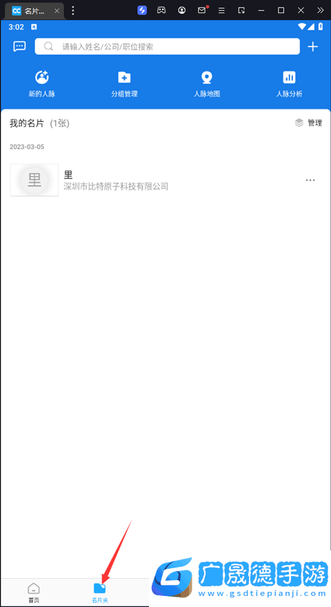 1、先打开【名片全能王】app,然后进入【名片夹】页面。