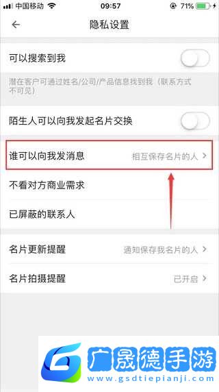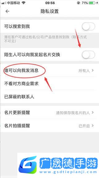 3、在隐私设置页面里就可以看到 陌生人可以向我发起名片交换。