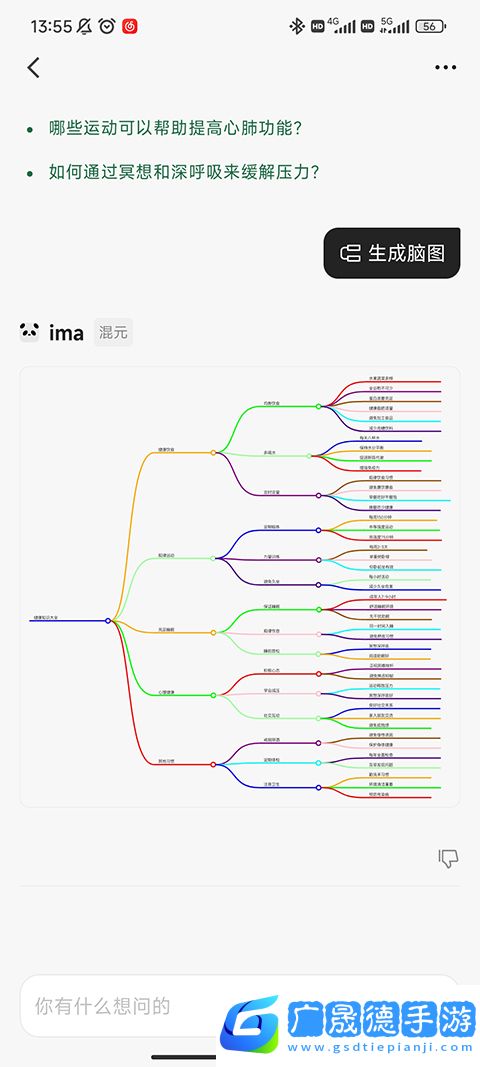 在对话底部的功能栏中点击“生成脑图”,或直接在输入框中发送“生成脑图”,即可基于当前内容生成脑图。