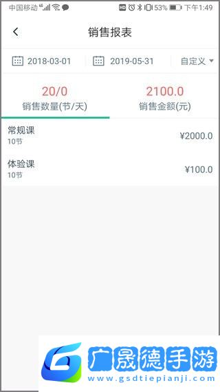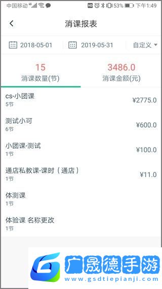 4、在消课报表中我们可以看到课程的价格,在中间可以选择时间;