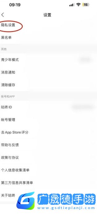 第二步:在设置页面,点击【隐私设置】选项进入,如图所示。