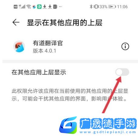 来到下面的页面,然后把【在其他应用上层显示】的按钮开启即可。