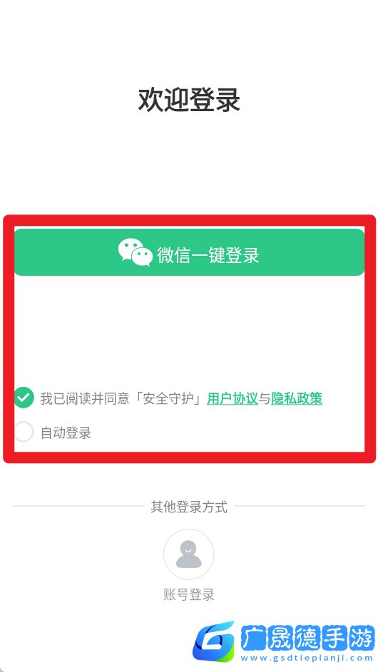 1、分为一键微信登入或使用账号登入,请先勾选同意《用户协议》和《隐私政策》内容。