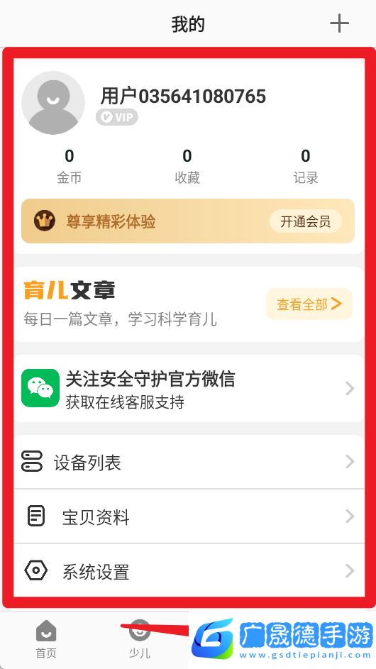 5、在“我的”页面可查看账号信息、设备管理、宝贝资料及系统设置等操作入口。