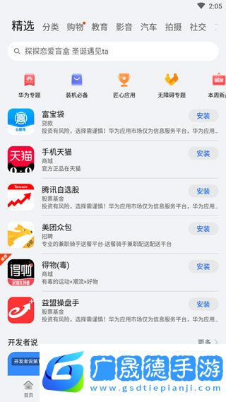 1、打开华为手机应用市场软件,在摩臣平台首页有很多推荐的应用app;