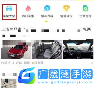 1、进入懂车帝app的主界面,点击“车型大全”。
