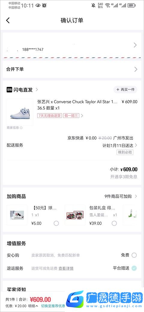 2、然后选择鞋码后,进入确认订单界面,订单信息确认后点击提交订单