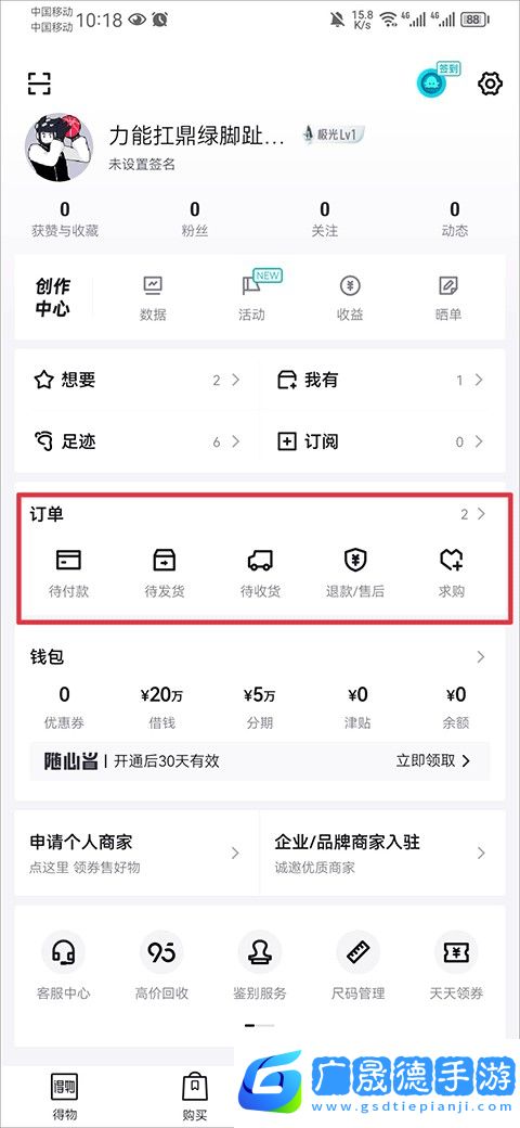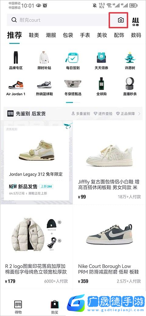 1、打开得物app,在购买界面中点击搜索框后面的相机按钮