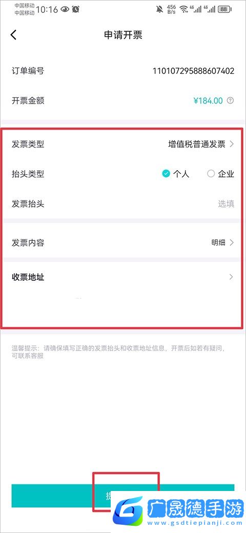 4、最后选择发票抬头、类型、以及地址后,点击提交申请即可