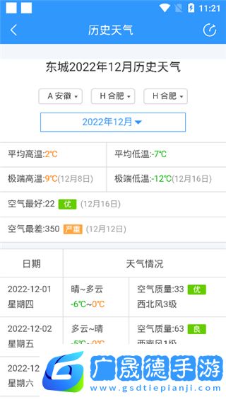2、选择自己想要查询的年月,它就会为用户带来月均温度,往下拉的话,还能看到该月每天的天气情况。