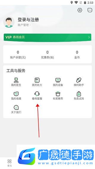 1、在春雨医生的“个人中心”界面中,点击“春雨客服”;