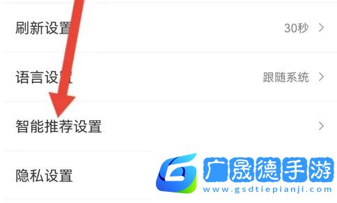 5、来到智能推荐设置,然后点击【个性化广告展示设置】右边的箭头。
