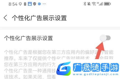 6、进入下面的界面,然后把【个性化广告展示设置】的按钮关闭即可。