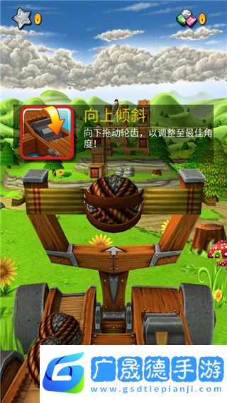 7、向下拖动齿轮可以让你的弹弓向上倾斜,方便你调整一个最佳角度;