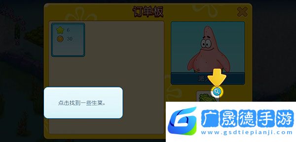9、点击找到我们可以看到派大星栏下需要一些生菜;
