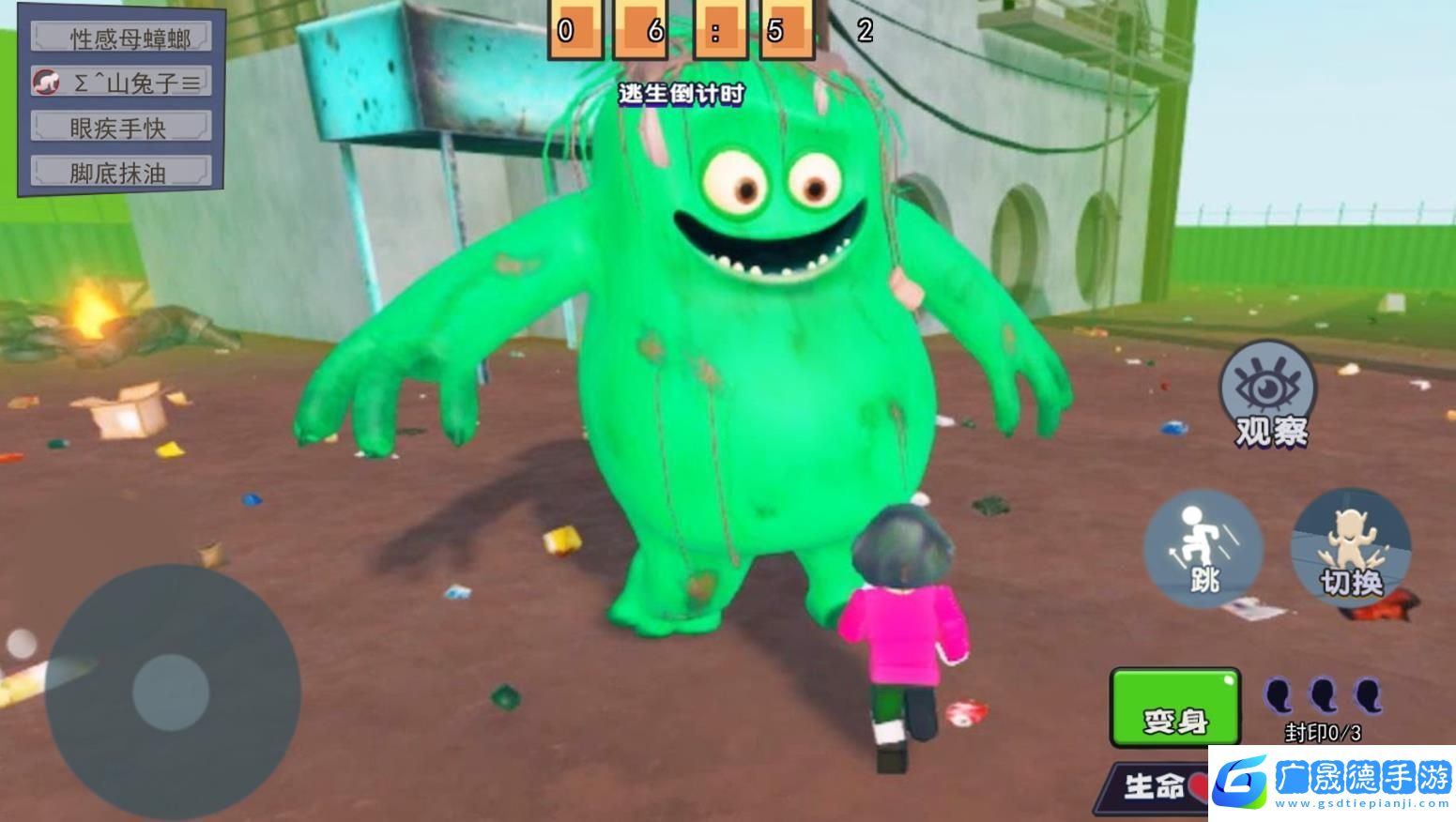 3、灵活操控角色,找准时机变身,避开怪物视线。