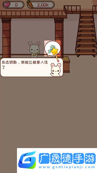 2、有租客来了,你可以在他头顶看到一个标着数字“1”的钥匙,他需要一间一星级的房间,点击钥匙,就能让租客入住了。