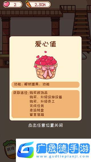 3、购买装饰品能增加爱心值,爱心值是判断公寓等级的重要因素,爱心值达到一定的值就能解锁新的房间哦。
