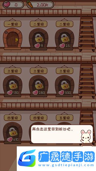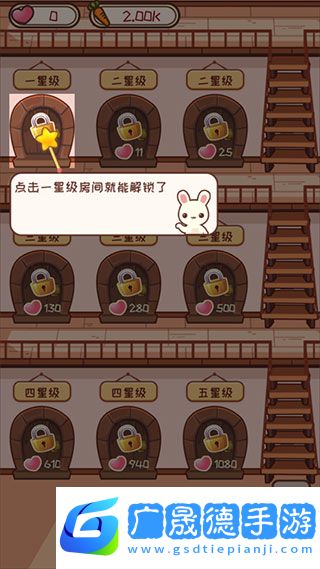 4、点击一星级房间花费胡萝卜解锁。