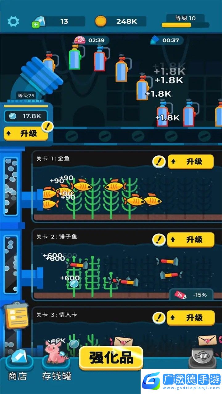 4、通过不断提高他们的水族馆管理技能,玩家可以拥有一个非常快乐和令人兴奋的水族馆。