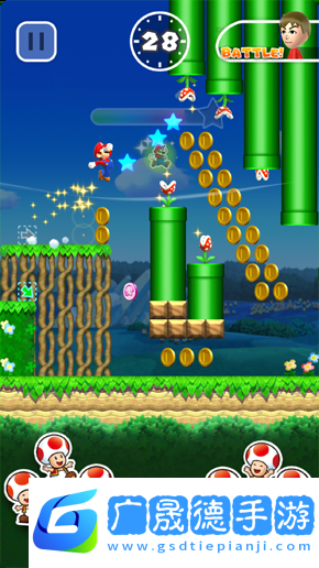 3.在游戏中,马里奥需要通过各种跑酷技巧,躲避敌人的攻击,收集金币和道具,提升自己的能力。