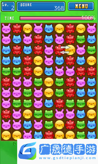 1、玩家通过轻触并滑动动物,改变它们的位置,以达成消除条件。
