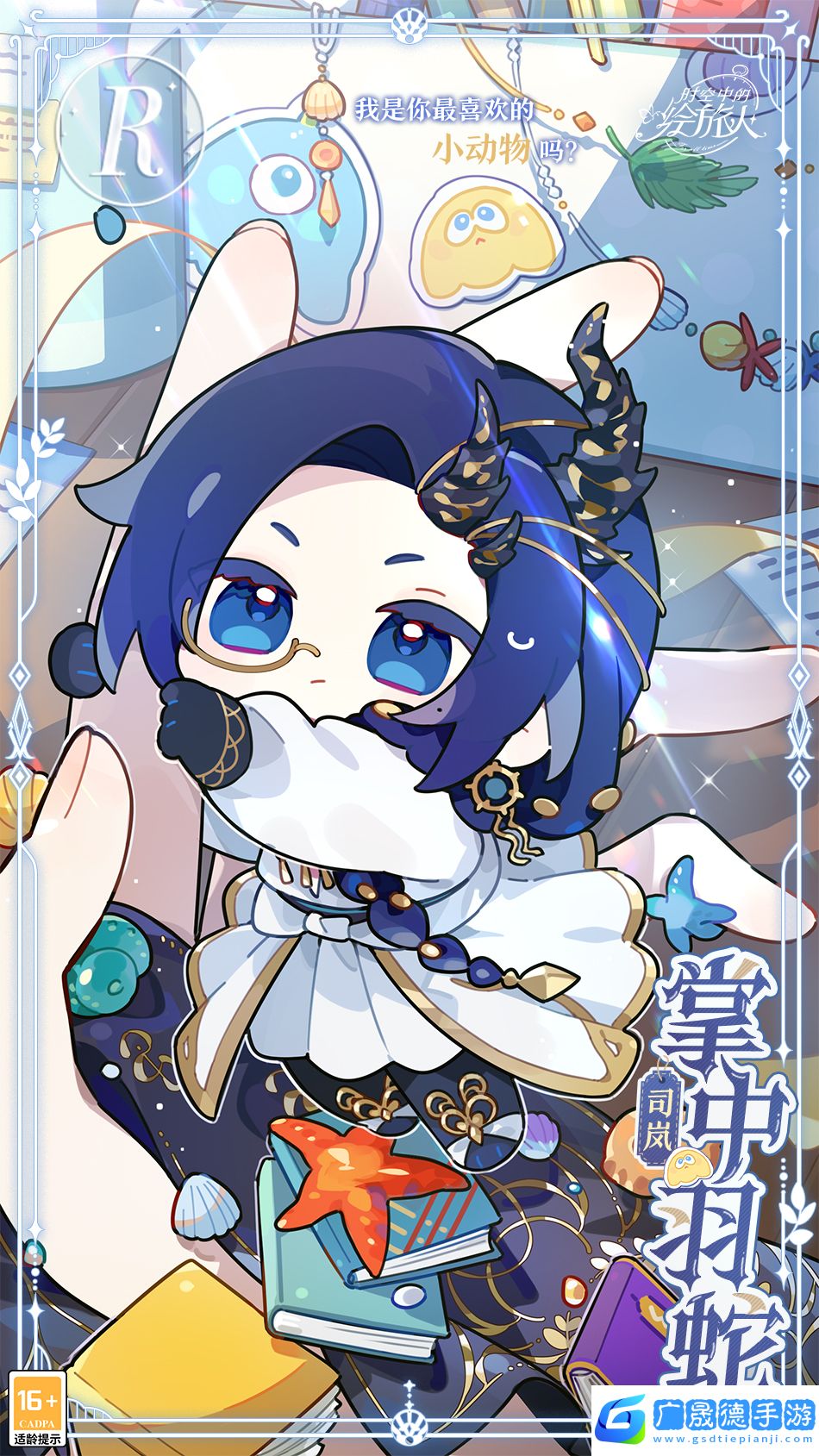 7月4日更新后 - 7月11日05:00,参与「当神明远行」风之灵活动,完成[旧忆收纳]翻牌配对关卡即可获得q版珍贵画灵司岚[掌中羽蛇]。q版画灵配备手偶剧场,可在解锁画灵后观看。