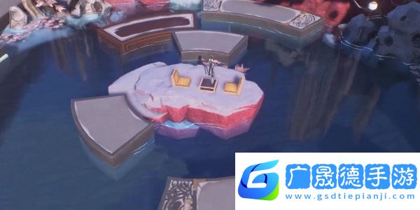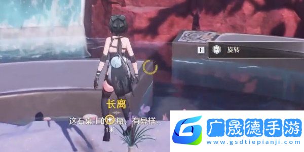 5、在如图所示的水池边,移动石桌上的花瓶开启机关,即可进入瀑布深处。