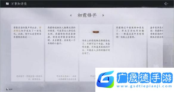 3、接着把得到的木盒给燕藏锋,与他进行交谈,交谈完毕后,就可以开始追踪他了。