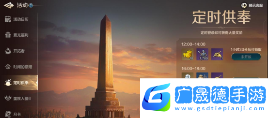 老活动,玩家每天可在3个时间段领取到定时供奉奖励,获得金币、兵力与科技点等奖励。