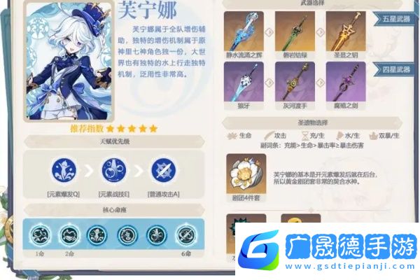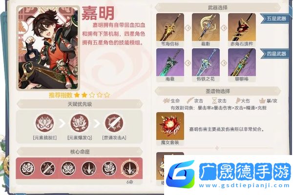 四星主c,在四星中输出能力位居前列,但火系输出5星大c很多,培养优先级并不高。0命是完整,6命很强,作为下落角色,手部乘区高一些,需要一些技巧,想要下深渊刚需芙宁娜班尼特闲云,抽芙宁娜顺手摸个6命可以练着,在幻境表现不错。