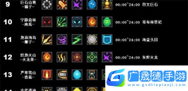 1、首先告诉玩家们的是,在这个游戏中一共有16种水果,然后每一种水果都需要在不同地图才能获取。