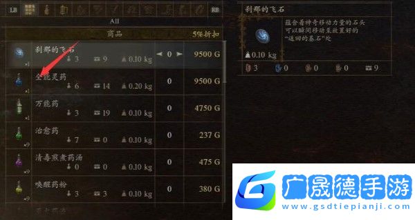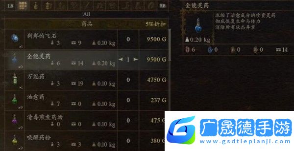 2、在格莉希雅的店铺里面有全能灵药。
