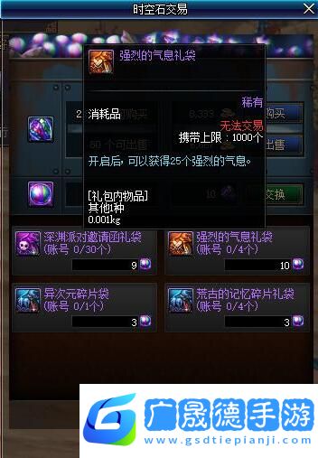2、接着打开他的商店,在商店中我们每天可以兑换到四个强烈的气息礼袋,不过这个方式获得的性价比是比较低的。