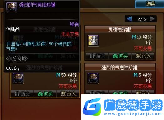 我们可以在积分商城中花费50积分换取一个强烈的气息袖珍,使用完可以获得2~50个强烈的气息。