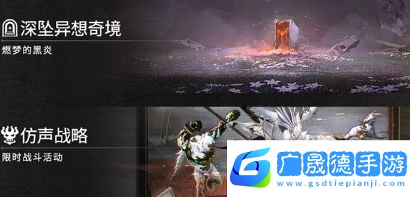 2、除了新地图外,1.1版本中还有很多的新活动,包括区域探索活动霄山源记、留影收集活动停影霄山、燃梦的黑炎深坠异想奇境、限时战斗活动仿声战略。