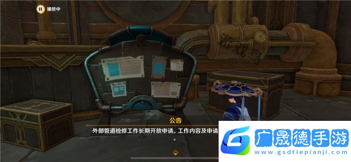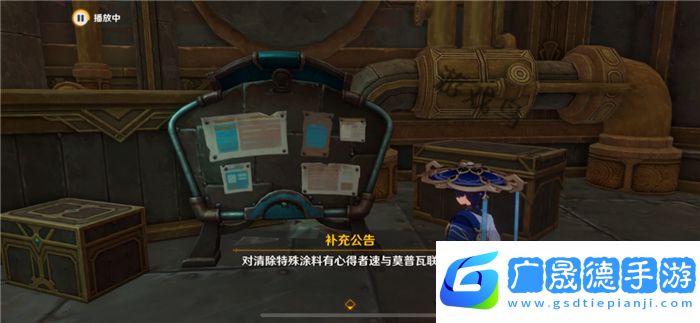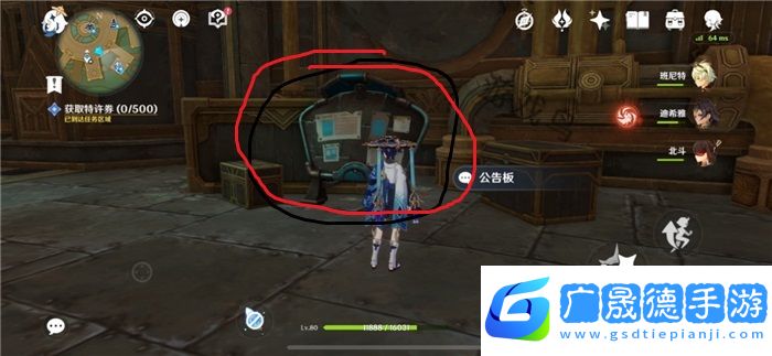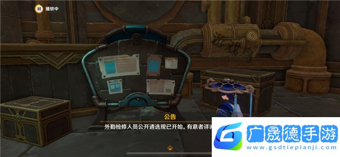 3、找到图中的公告板,这里的任务会不定时刷新,玩家可以先去做别的任务,偶尔回来看一下即可触发。