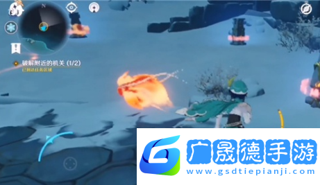 2、会看到在那对面有个温暖精灵,去把温暖精灵引过来。