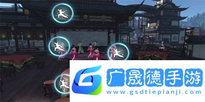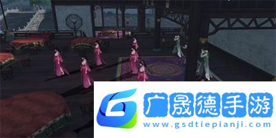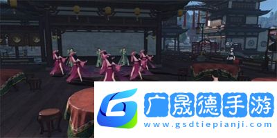 1、首先我们需要前往到汴京【1198,1109】的位置,跳到桌子上装扮成舞娘,混到跳舞的队伍当中去。